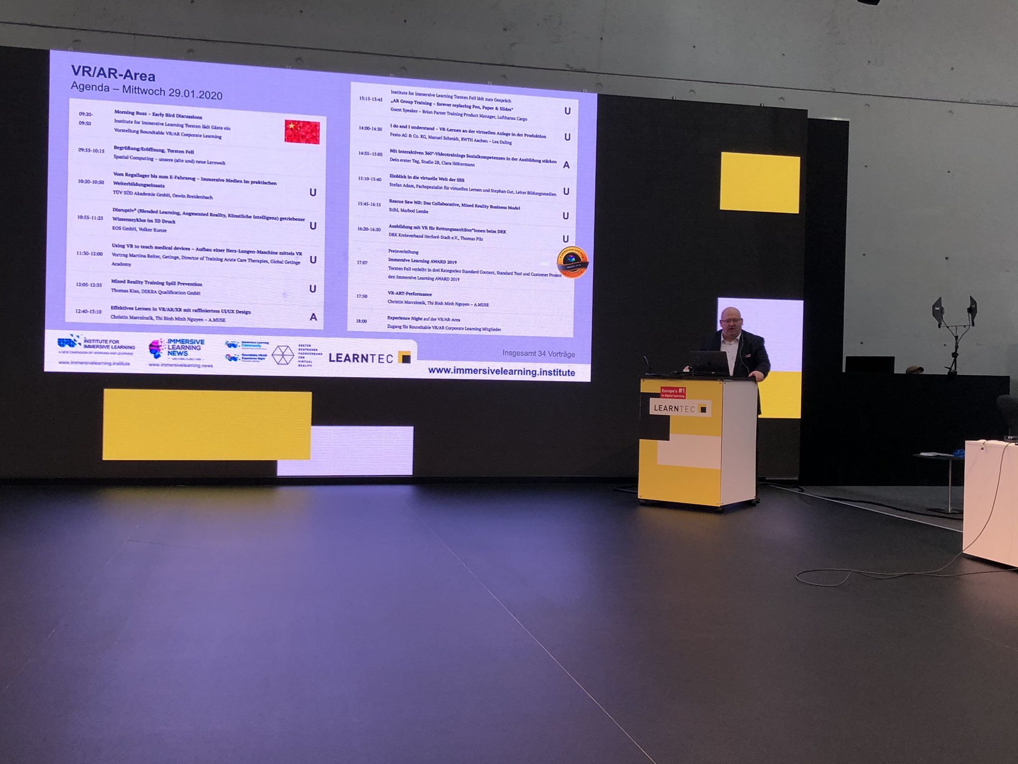 Morning Buzz zum Thema VR/AR-Markt in China, danach eigener Vortrag „Spatial Learning“, dann Moderation bis 13:00 auf der VR/AR-Area – Schwerpunkttag Anwenderunternehmen, 13:00 Guided Tour, 14:30 Start Moderation Kongress und eigener Vortrag „Immersive Learning – Status Quo – Status Futurus“ bis 15:15, Moderation bis 17:00 im Kongress, 17:07 Verleihung Immersive Learning AWARD auf der VR/AR-Area. 18:00 – 3.Experience Night auf der VR/AR-Area für die Roundtable VR/AR Corporate Learning – Mitglieder. – geschafft.