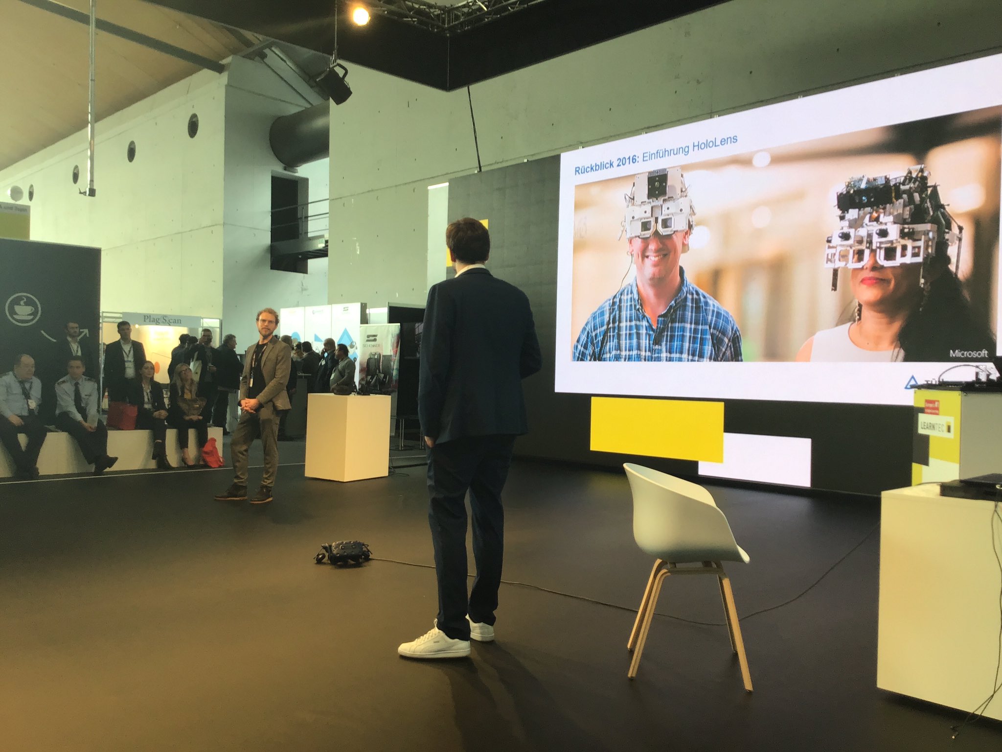 Um 12:10 hatte ich mit Marco Maier von Viscopic eine Live-Demo der neuen Microsoft Hololens 2 auf der VR/AR-Area mit dem Schwerpunkt, wie diese im Umfeld Aus-/Weiterbildung eingesetzt werden kann. Viele Besucher haben danach die Möglichkeit genutzt bei Viscopic einmal selber die neue Hololens 2 auszuprobieren.