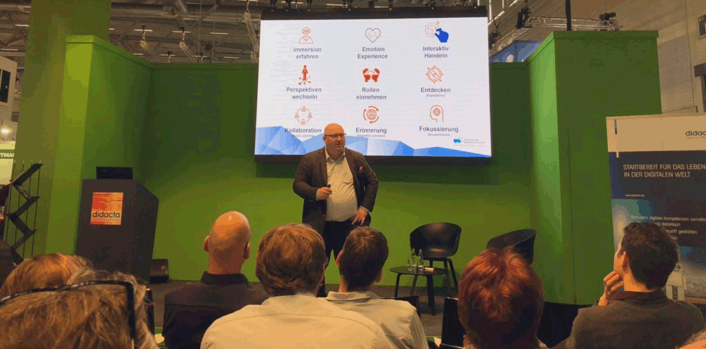 Also bin gespannt, wie es mit der DIDACTA 2020 weitergeht. Ich glaube ja, dass diese in der Schulischen und Beruflichen Ausbildung das Thema VR/AR stärker fokussieren wird. Vielleicht ja auch mit dem Institute for Immersive Learning, ich stehe gerne zur Diskussion zur Verfügung.