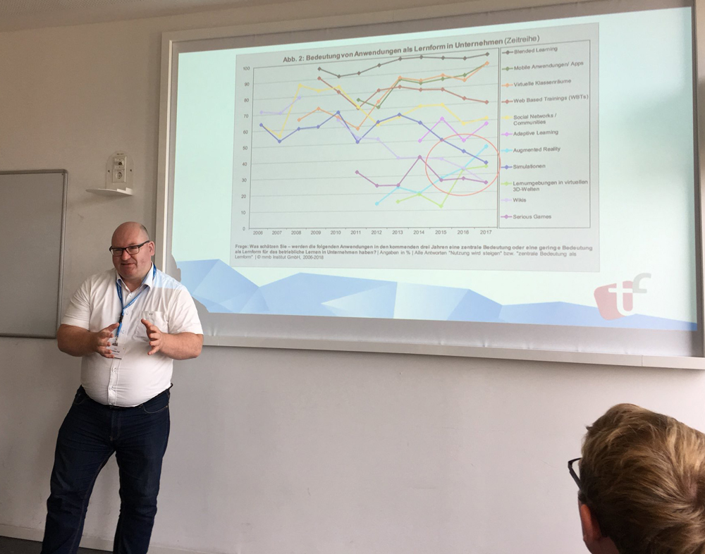 Die Erfahrung passte gut, da ich am 10.09. in Frankfurt zum ersten Male am Arbeitskreis VR/AR-Learning in Frankfurt teilgenommen haben. Dies war der 2.Workshop eines Kreises der vornehmlich aus Hochschulen besteht und sich über aktuelle Umsetzungen in der Lehre auseinander setzt. Mein Auftrag war hier in der KeyNote den aktuellen Markt und Umsetzungen zum Corporate Learning mit VR/AR vorzustellen. Hier ergaben sich interessante Kontakte und der AK bietet eine gute Ergänzung zu meinem Roundtable in dem sich Anwenderfirmen regelmäßig treffen und austauschen, nächstes Treffen 07.11. in Wuppertal.