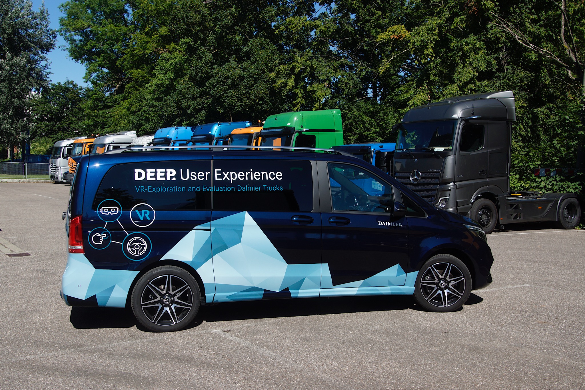In den nächsten Wochen sind die Entwickler von Daimler Trucks mit einem mobilen Simulator unterwegs, in welchem Lkw-Fahrer die neuen digitalen Fahrassistenzsysteme des Actros ausprobieren und erleben können. Der Simulator befindet sich im Fond einer V-Klasse.