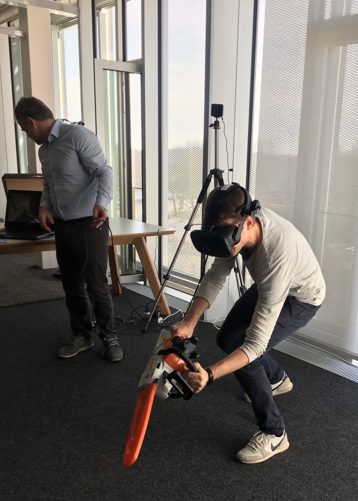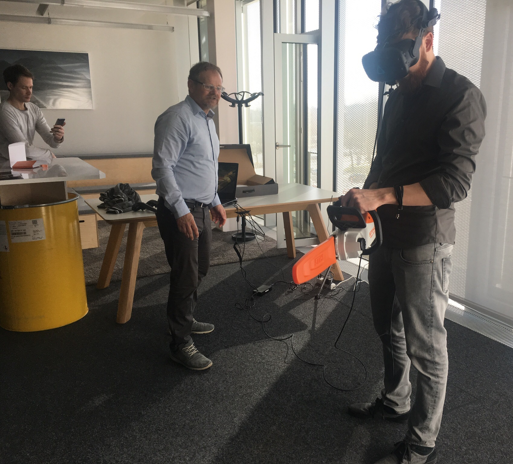 Weiterhin konnten Live unterschiedlichste mitgebrachte VR-Experience aus verschiedenen Firmen ausprobiert und diskutiert werden, z.B. konnte mit einer echten Stihl Mottorkettensäge in der virtuellen Welt gelernte werden, wie Bäume gefällt werden oder es wurden Autorenwerkzeug und SDK-Ansätze Live erlebbar und Lerninhalte konnten ohne Programmierkenntnisse erstellt werden. Auch wurden Mixed Reality (MR) – Beispiele mit der Hololens gezeigt. In den 9 Sessions wurden z.B. Themen wie didaktische/methodische Modelle in VR/AR-Lernszenarien, benötigte Gremienregelungen für VR/AR-Projekte und Erstellungsprozesse von VR-Learning-Projekten diskutiert. Die wichtigsten Ergebnisse der einzelnen Session wurden am Schluss im Plenum präsentiert und diskutiert.