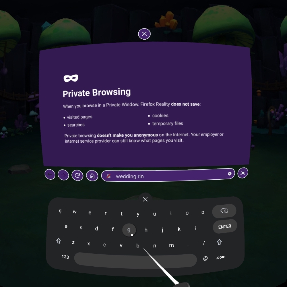 Among these features is the ability to search the web using your voice. Text input is still a chore for virtual reality, and this is a great first step towards solving that. With Firefox Reality you can choose to search using the microphone in your headset.